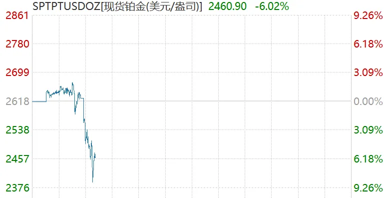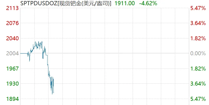 除金银外,现货铂金、现货钯金纷纷大跌。