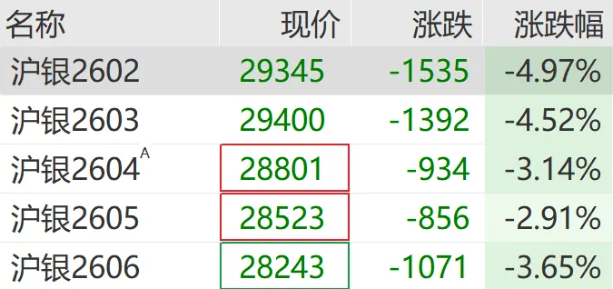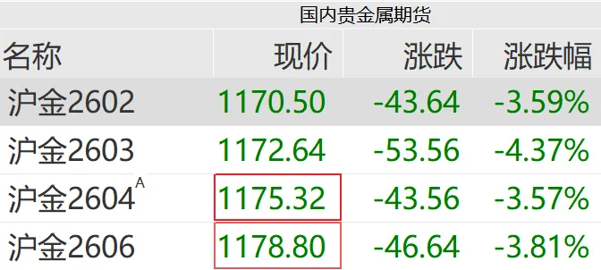 国内市场上,沪金、沪银主力合约均有明显跌幅,铂金主力合约跌超10%。
