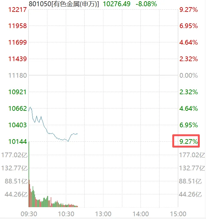 A股有色金属板块盘中跌超9%,相关个股大面积跌停。