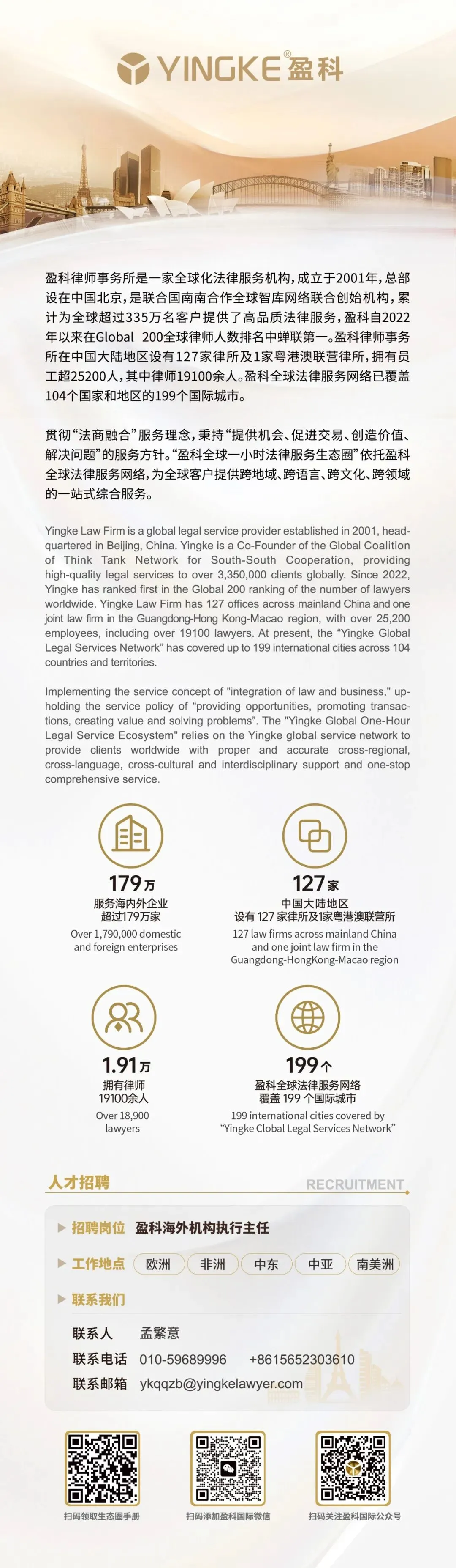 盈科广州始终致力于为客户“走出去”提供坚实、可靠的法律保障,涉外法律服务团队在涉外贸易、跨境投资、国际工程与能源项目、全球合规治理及争议解决等领域具备成熟的服务经验,依托已覆盖104个国家和地区的199个国际城市的盈科全球法律服务网络,能够为客户跨境业务提供真正本地化、一站式、协同式法律支持,高效应对多法域监管差异与合规挑战,切实降低跨境经营风险。