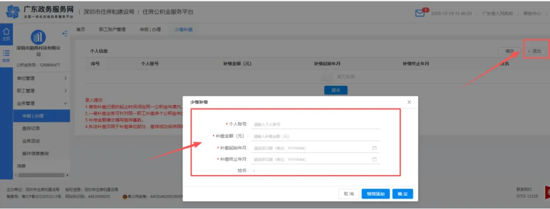 备注:可生成业务表单-《住房公积金少缴补缴确认表》