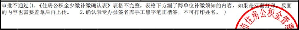 注意:《住房公积金少缴补缴确认表》扫描件需扫描完整内容,专办员签名需手工黑字笔正楷签,不可打印姓名
