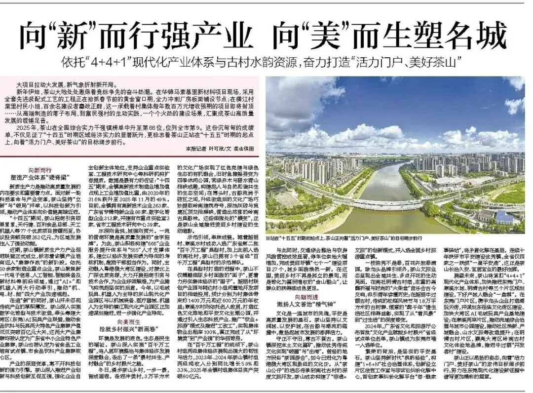 2025年,茶山在全国综合实力千强镇榜单中升至第66位,位列全市第9。这份沉甸甸的成绩单,不仅见证了“十四五”时期区域经济实力的显著跃升,更标志着茶山正站在“十五五”时期的起点上,向着“活力门户、美好茶山”的目标阔步前行。