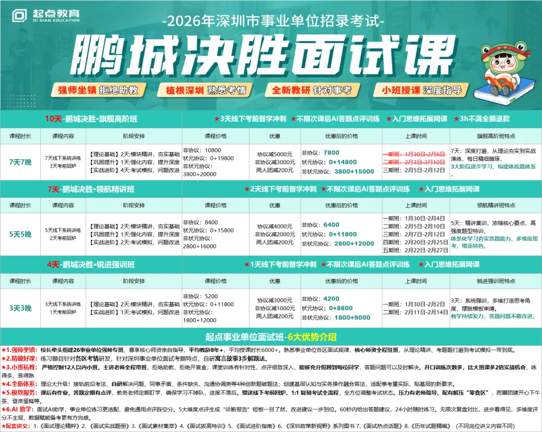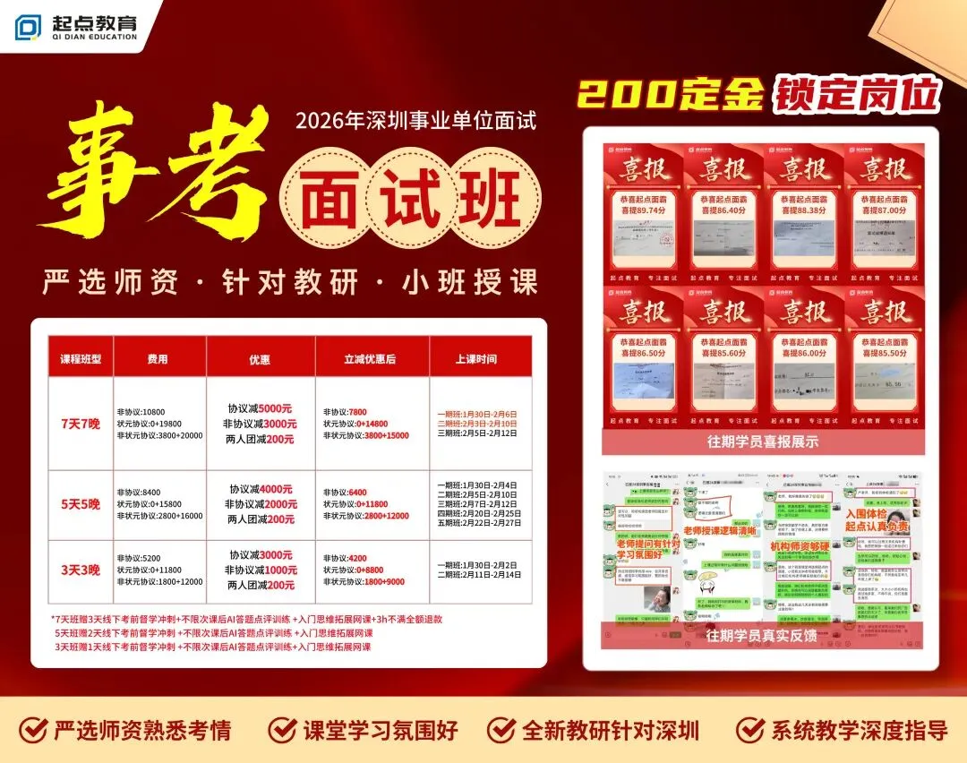 拒绝无效助教!深圳事业单位线下面试班,全程主讲带班;讲师均具有多年教学经验,功底扎实,讲解清晰、点评详细,问题有解决,答题有示范