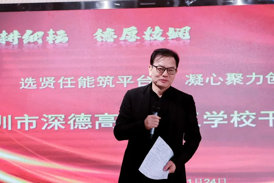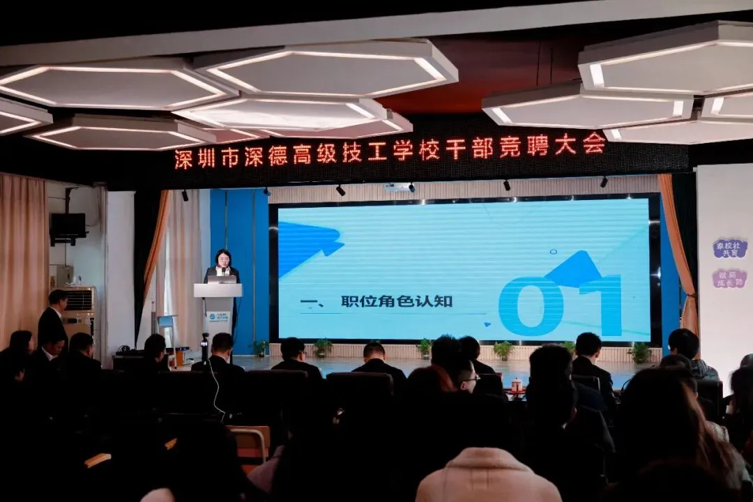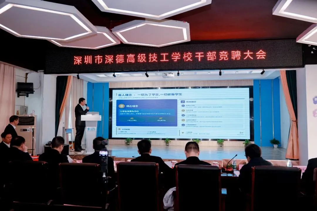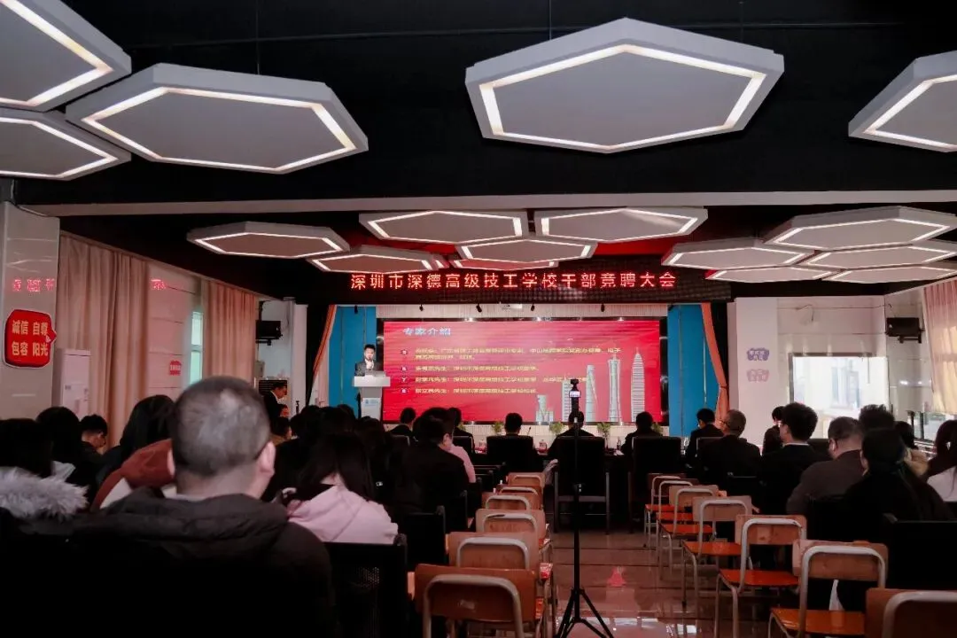 2026 年 1 月 24 日,深圳市深德高级技工学校在总校区多媒体会议室成功举办了干部竞聘大会。本次大会吸引了 16 名优秀教师参与竞聘,他们怀揣着对教育事业的热情和对更高岗位的追求,展开了激烈的角逐。此次竞聘大会不仅是学校干部选拔任用机制的一次创新实践,更是深圳市同类学校中的首例,开创了技工学校干部竞聘的先河,深德高级技工学校竞聘专家组长、总督学谭纯教授等专家出席并进行指导。
