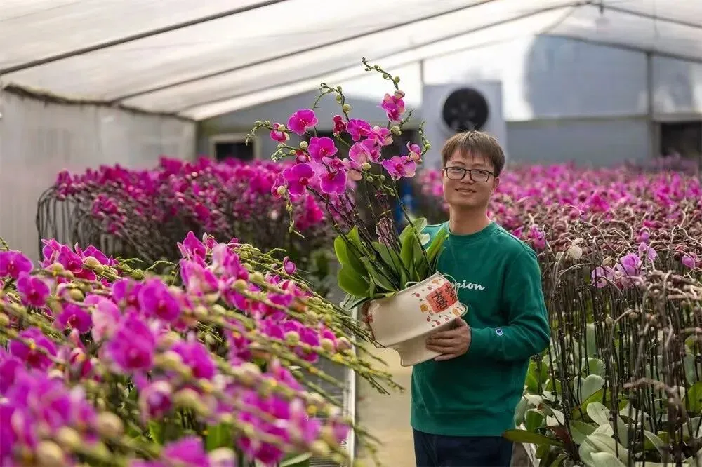 坐落于江高镇峡石村的蝴蝶兰产业园,吸引蝴蝶兰种植企业聚集发展,成为集科研、生产、文旅于一体的现代农业示范园区。“自2023年项目落户以来,蝴蝶兰产业园已吸引30多家企业入驻,形成了从科研、生产到销售、物流的完整产业链,规模化种植确保了年花旺季的充足供应,为火爆的销售提供了坚实后盾。”广州万顷洋农业发展有限公司负责人介绍,仅该产业园2026年蝴蝶兰产量就有望达到800万株。