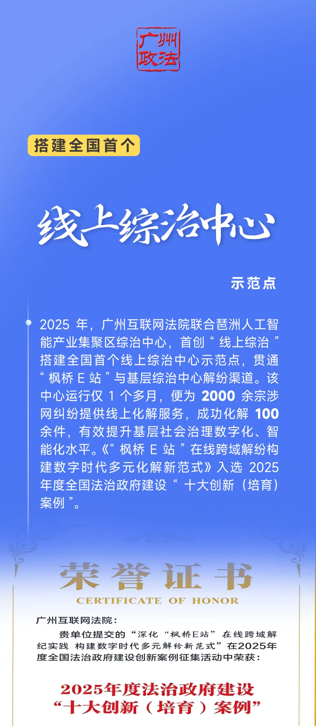 五载栉风沐雨,今朝硕果盈枝。“十四五”以来,全市政法战线深入贯彻习近平总书记、党中央决策部署及省市工作要求,忠诚为墨、担当作笔,奋力书写波澜壮阔的新时代政法篇章,成功创建全国社会治安防控体系建设示范城市、全国禁毒示范城市、全国法治政府建设示范市,平安广东建设考评实现全省三连冠,获省颁“一星平安鼎”,国家安全业绩考评连续三年位居副省级城市首位,群众安全感达99.08%。这五年,广州政法勇立潮头、善作善成,多项工作走在全国前列,为政法工作现代化贡献了广州的智慧和担当。