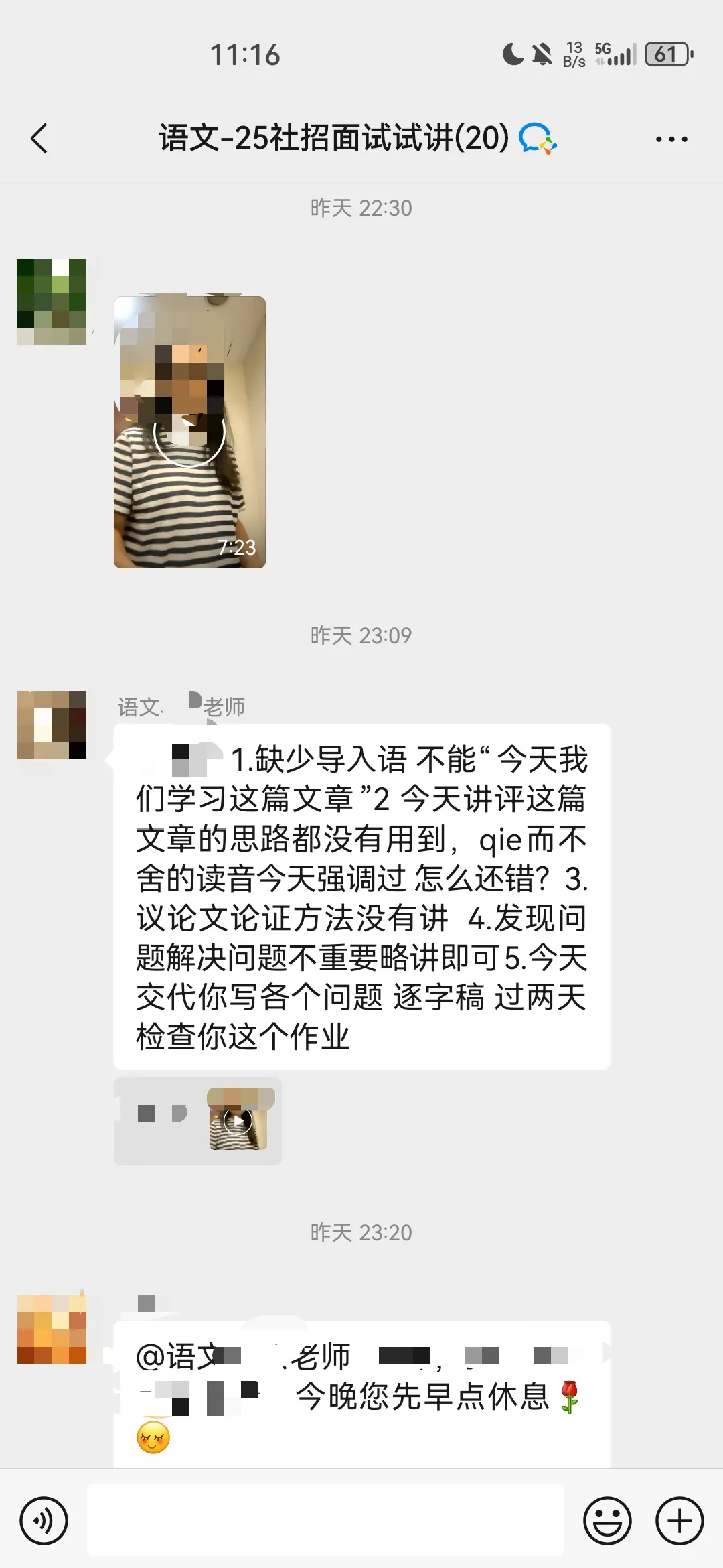 提供课后服务:3月1-20日期间每两天录一个试讲视频,由授课老师进行点评完善