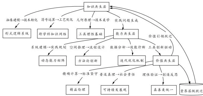 能力提升维度凸显劳动效能优化对数学知识的驱动作用,数据分析与模式识别成为解析劳动过程、优化生产流程的基础,促使数学归纳推理与劳动迭代改进,实现跨领域思维协同。在价值塑造维度,数学的严谨性与劳动的创造性达成深层统一:精确计算的要求与工艺标准的坚守共同彰显“精益求精”的伦理追求,数学的普适性真理与劳动的社会责任在可持续发展等议题中达成价值共识,形成理性精神与人文关怀的双重价值。