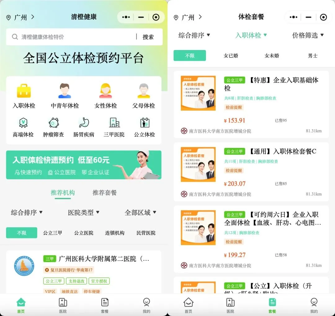如需查看更多入职体检套餐,可点击下方图片,进入清橙健康体检预约平台进行查看。