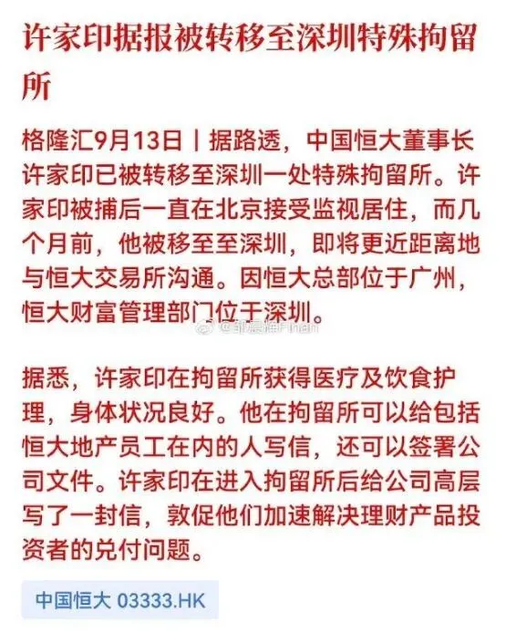 最近一众自媒体又开始热炒许家印,说他被从北京挪窝到了深圳,搞得像什么新鲜大新闻。