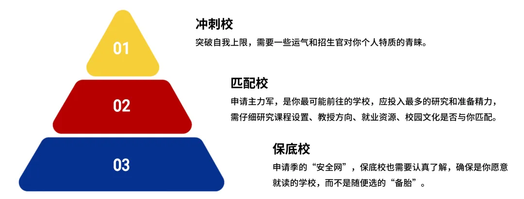 这三个梯度不是简单按照学校排名划分,而是基于对学生个人背景与学校录取数据的匹配分析,构成一个动态、平衡的申请组合,实现申请结果的最优解。