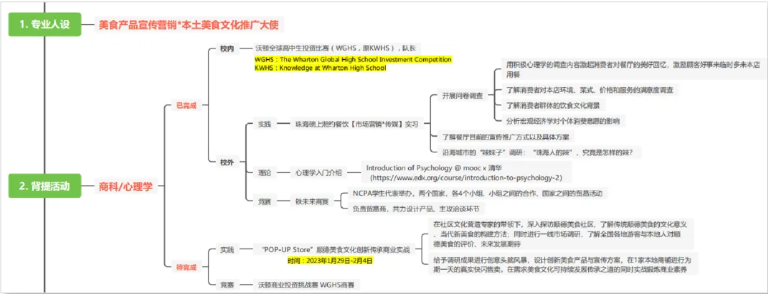 结合前期沟通,了解学生的情况,梳理学生已参与的活动,为学生建立清晰的申请画像,奠定活动主线。