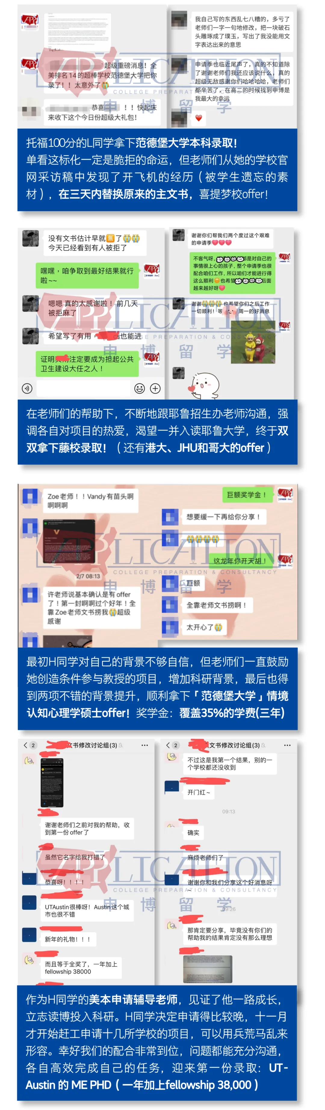 我们专注于美国、英国、香港、澳门、澳大利亚、新加坡、加拿大等国家/地区,已经帮助众多学生收获世界顶尖名校录取offer。