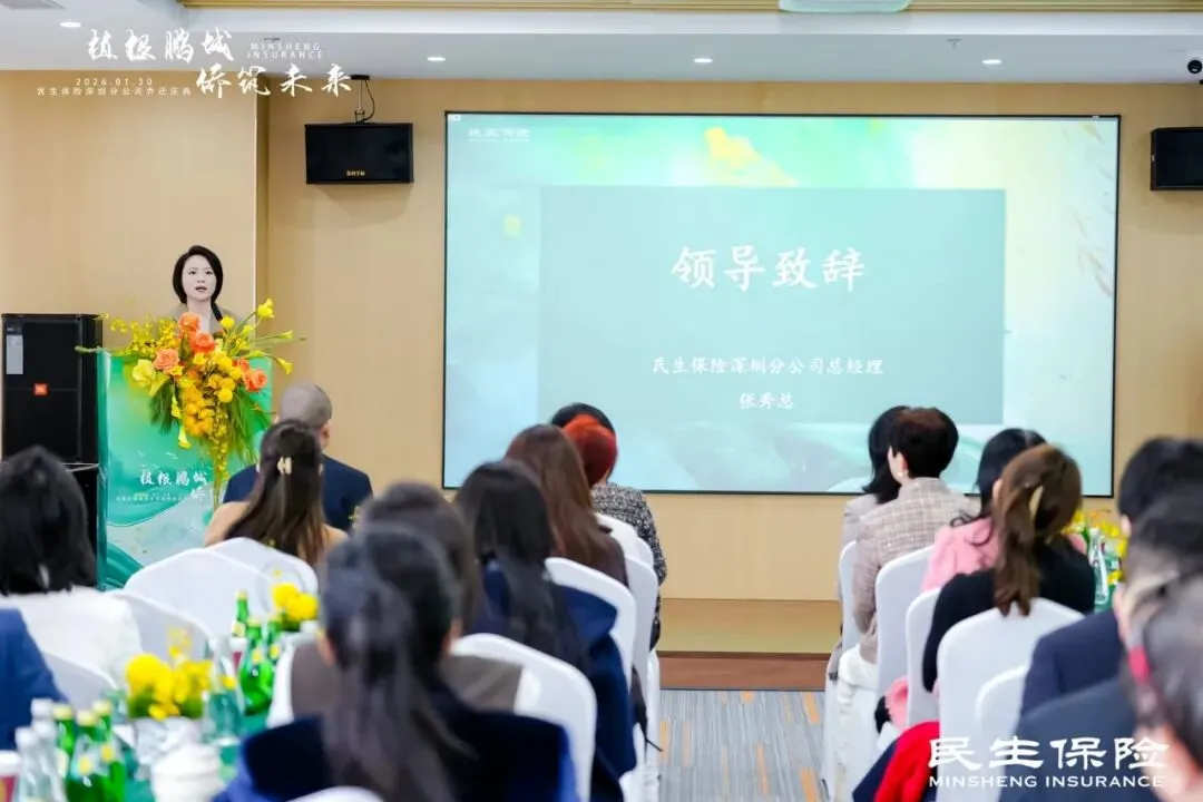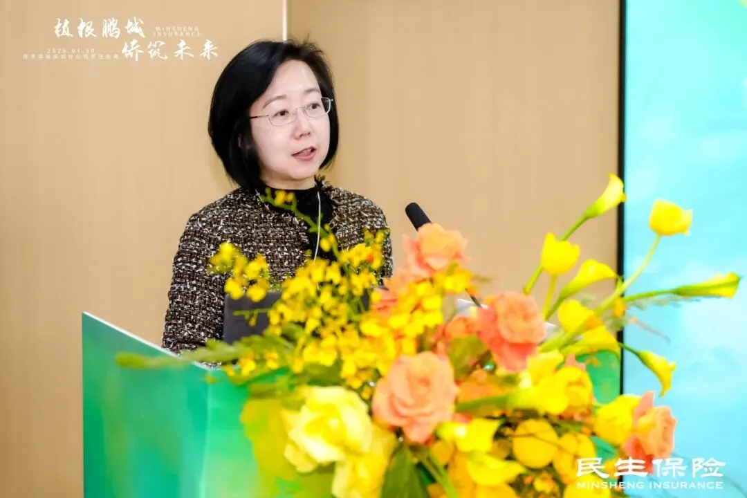 在嘉宾分享环节,运泰置业有限公司运营总经理易志芳女士首先致辞,祝贺民生保险深圳分公司乔迁大吉,期待未来深度合作,共创价值。