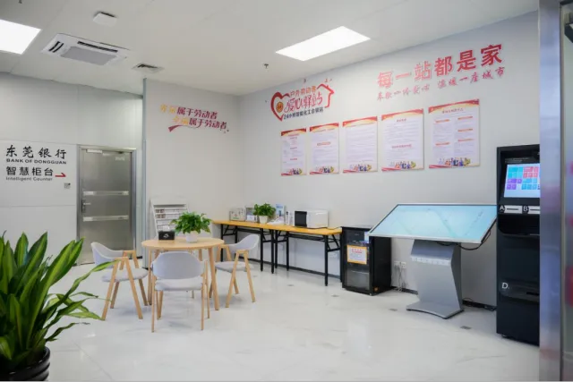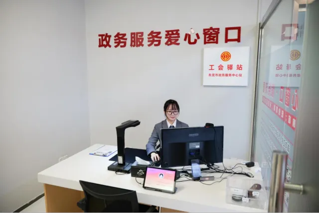 同日揭牌的“工会驿站|东莞市政务服务中心站”不仅是户外劳动者的歇脚地,更是无障碍服务的暖心窗口。驿站配备智能化终端,提供全面政务指引与自助办理服务,推动政务服务从窗口向前延伸,实现“一站办、随时办”。