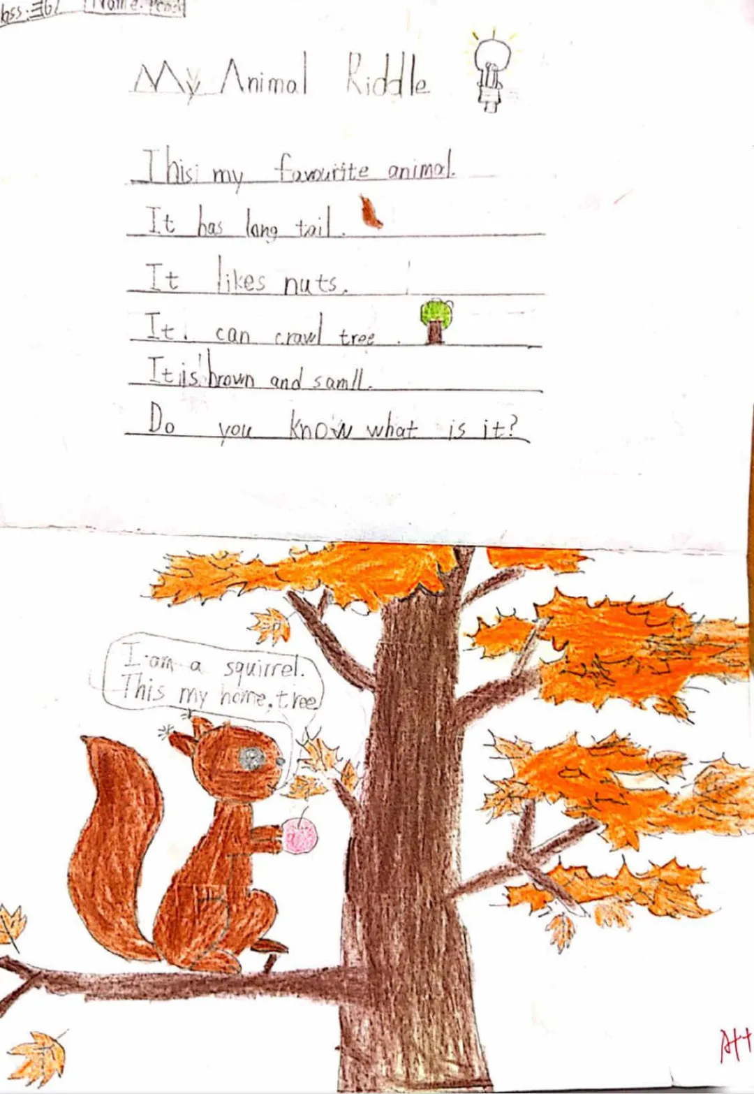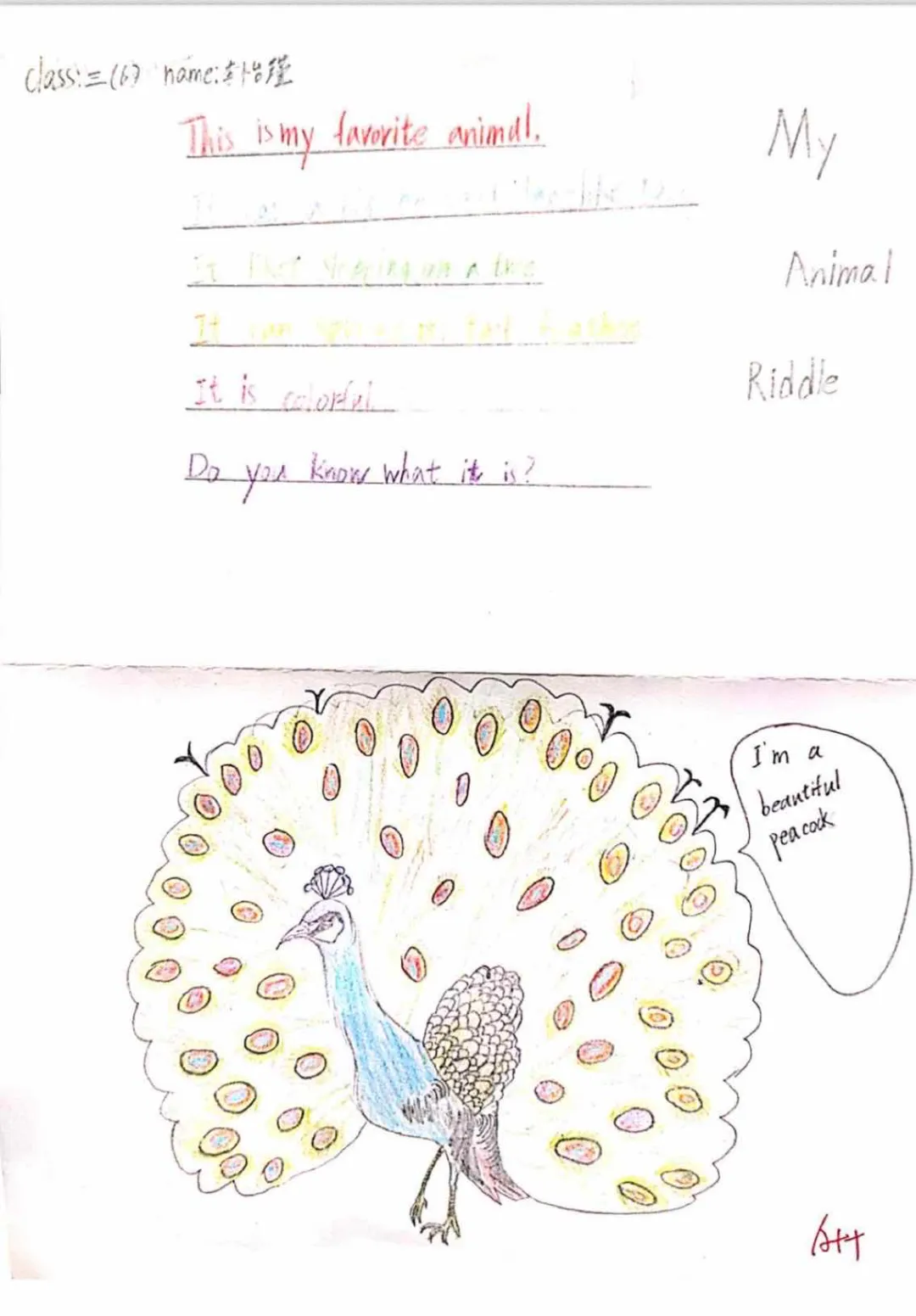 低段除采用游园会的形式集中展示外,一年级教师紧扣教学目标,设计了手工创作与字母认读相结合的任务,将基础知识点融入动手实践,助力学生扎实掌握字母基础;二年级则聚焦趣配音与口语表达,孩子们化身“小小配音员”,用灵动的声音演绎经典片段,在大胆开口中锤炼口语能力,全面展现综合语言素养。