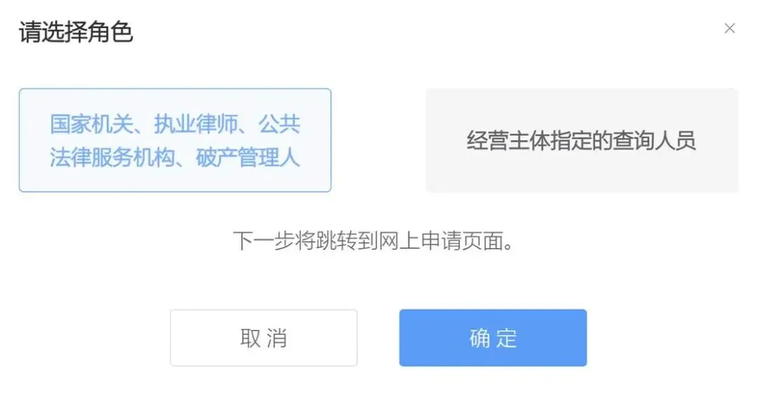 点进“企业登记档案查询(东莞)”后,会出现“角色选择”窗口。