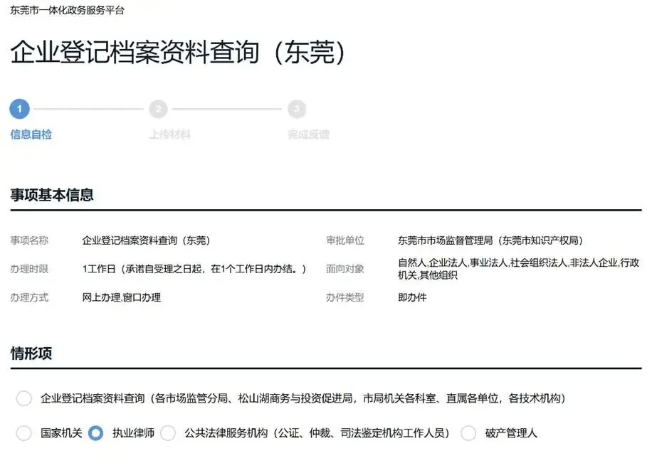 如果起诉东莞的企业,可通过线上申请查询企业登记信息。无须向法院申请调查令,通过“企莞家”平台或广东政务服务网就可以进行查询,且提供了电脑端和移动端两种渠道,极大的方便了律师办案。现在罗律师实践演示如下,实现对东莞企业的查档,可查法定代表人和股东的身份信息材料。