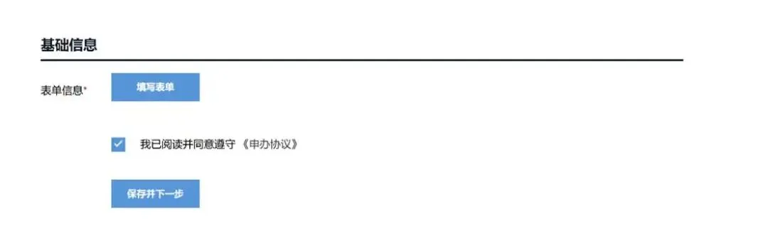 授权信息填写好后,在“基础信息”项下,点“填写表单”,将企业的名称、统一社会信用代码、工商注册号,填在表单内。工商注册号可以通过“爱企查”等平台查询到。