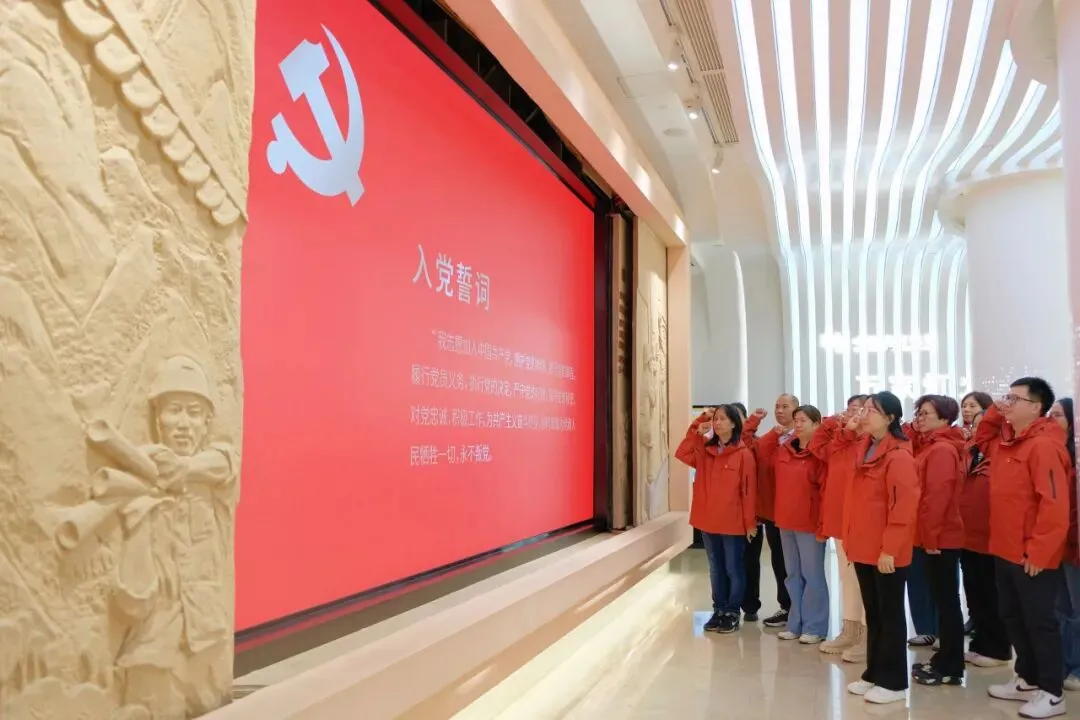 历史的厚重、先辈的足迹、当代的担当,交织成一份无形的教案。有老师说,站在曾志同志工作过的地方,更明白了“为谁培养人”的深刻含义;有老师凝视着那些抢修复电的照片,思考如何把“坚守”与“奉献”讲进孩子的心里。在鲜红的党旗前,党员老师们举起右拳庄严宣誓,入党誓词字字千钧,既是对革命先辈的告慰,更是对教育初心的郑重承诺。