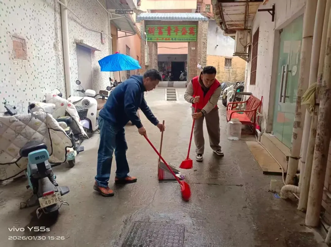 行动中,大家手持扫帚、垃圾夹等工具,在背街暗巷、人员密集区域清理垃圾、整治卫生死角等专项工作,以务实举措切实筑牢村民健康安全防线,全力营造干净整洁、健康有序的乡村居住环境。同时呼吁村民们一起行动起来,对可能滋生蚊虫的角落进行了重点清理。