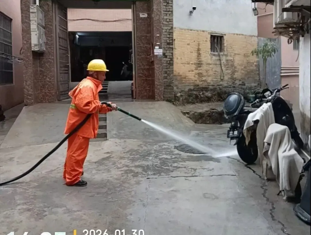 环卫工人利用高压水枪等清洁工具,对村内主次干道、背街小巷、人行道等区域进行全面冲洗,重点清理路面尘土、污渍、杂物及卫生死角,彻底还原道路洁净。