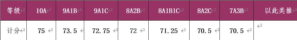 综合评价录取总成绩满分为750分。其中,高考成绩60%比例计算;入学测试成绩满分为225分,按入学测试的实际成绩计算;10门学业水平考试成绩以考生实际等级计算,每出现一个B减1.5分;每出现1个C,减2.25分;出现D者,减7.5分。