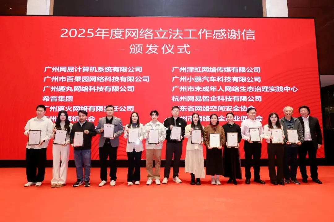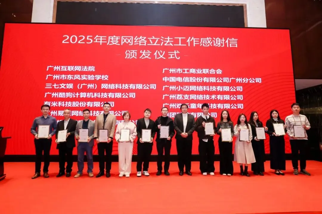 作为全国首批国家网信办网络立法联系点,广州互联网协会自承担相关工作以来,始终致力于搭建网络空间治理与立法实践的桥梁纽带,得到了网络空间各参与主体的积极响应与鼎力支持。协会创新探索设立 33 个网络立法联络站,为网络立法工作的科学性、针对性与可操作性注入了鲜活实践力量。为致敬每一份担当与热忱,协会向在网络立法调研、意见征集、实践探索等方面做出突出贡献的 54 个网络立法联络站及部分网络空间主体代表、专家学者致感谢信。
