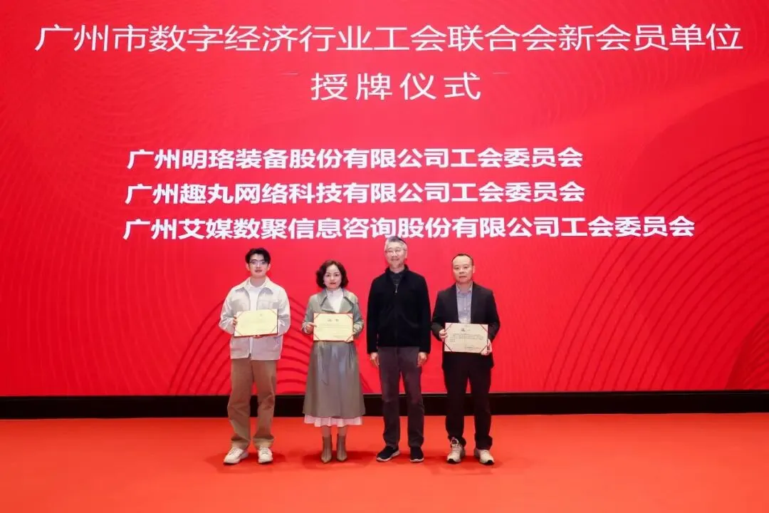 广州市数字经济行业工会联合会罗建副主席为工联会新会员单位颁发证书