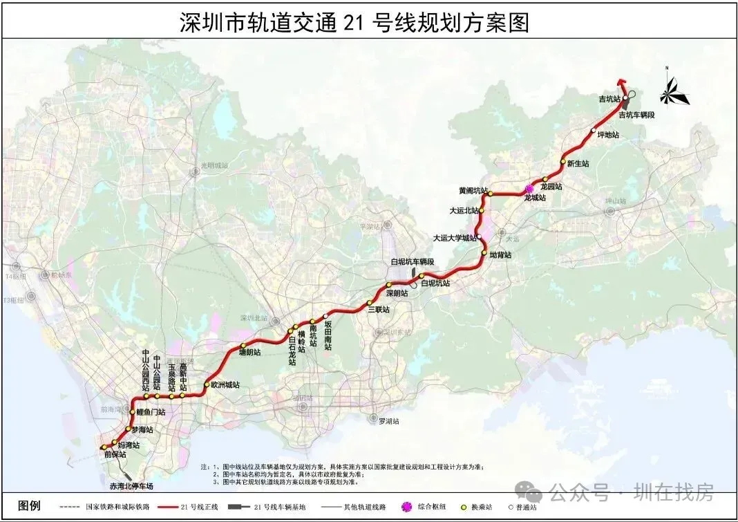 ▲深圳地铁21号线前海至坂田示意图(站名以实际运营为准)