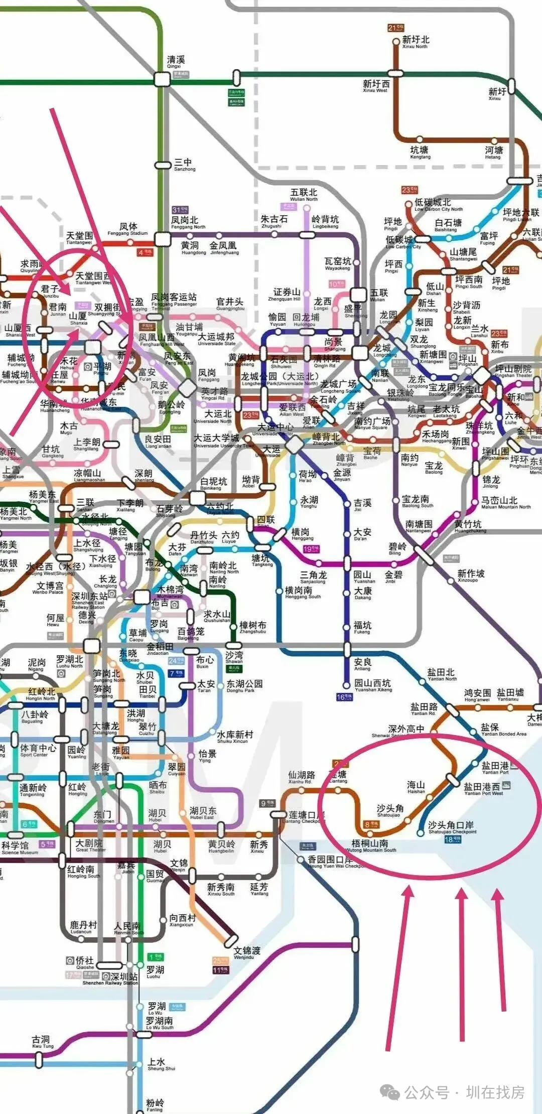 ▲深圳地铁修编调整线示意图(站名以实际运营为准)