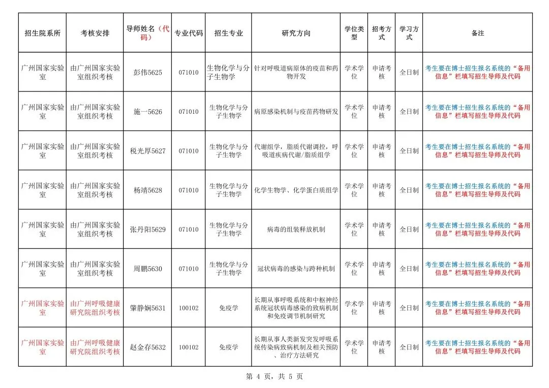 由广州呼吸健康研究院组织考核的考生,按《广州医科大学2026年博士研究生招生简章》要求进行考核,考核安排由广州呼吸健康研究院另行通知。