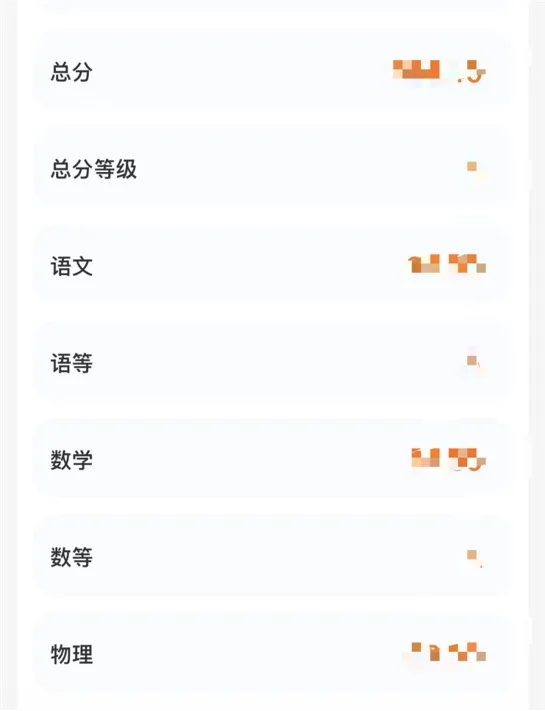 所以家长和孩子也只是知道各科大致的等级线,也不知道分数,