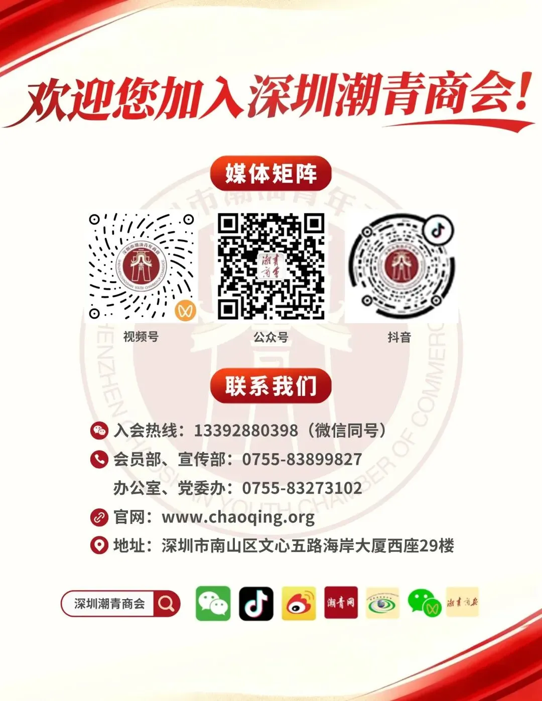 深圳潮青商会常务副会长李敏、赵育忠、林子超、林舜州,决策咨询委员会执行主席张镇江、庄映锐,轮值副会长洪旭新、沈晓锋、林坚耿、薛浩然、李署敏,副会长林晓义、肖细弟、李浩锐、吴增曙、黄贤辉、陈晓彬,轮值常务理事陈绮慧、蔡斯娟、郑燕芳,常务理事郑梽帆、郑创鑫,轮值理事陈少莹、汤榕平、李仕鑫、黄思恬、郑鑫城、洪祖芳、张小婉、李浩东,理事梁于祺,嘉宾马建利、郑庆鸿,执行秘书长林育新、郑娟,副秘书长王倩珩等参加活动。