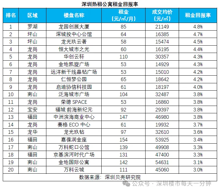 据深圳贝壳研究院监测,当前市场热租公寓租金回报率基本在3%以上,不少优质楼盘更是突破4%。相较于传统理财渠道,这类物业拥有更为丰厚的现金流收益,也成为支撑本轮商业用房市场持续回暖的重要底气。
