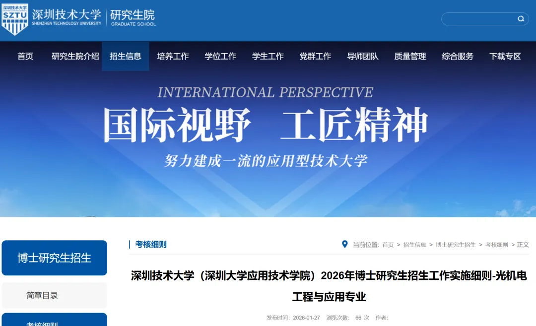 为进一步探索和完善博士选拔机制,根据国家有关文件精神和学校有关文件的要求,现将应用技术学院光机电工程与应用专业2026年硕博连读和“申请-考核”制博士研究生招生工作有关事项公布如下: