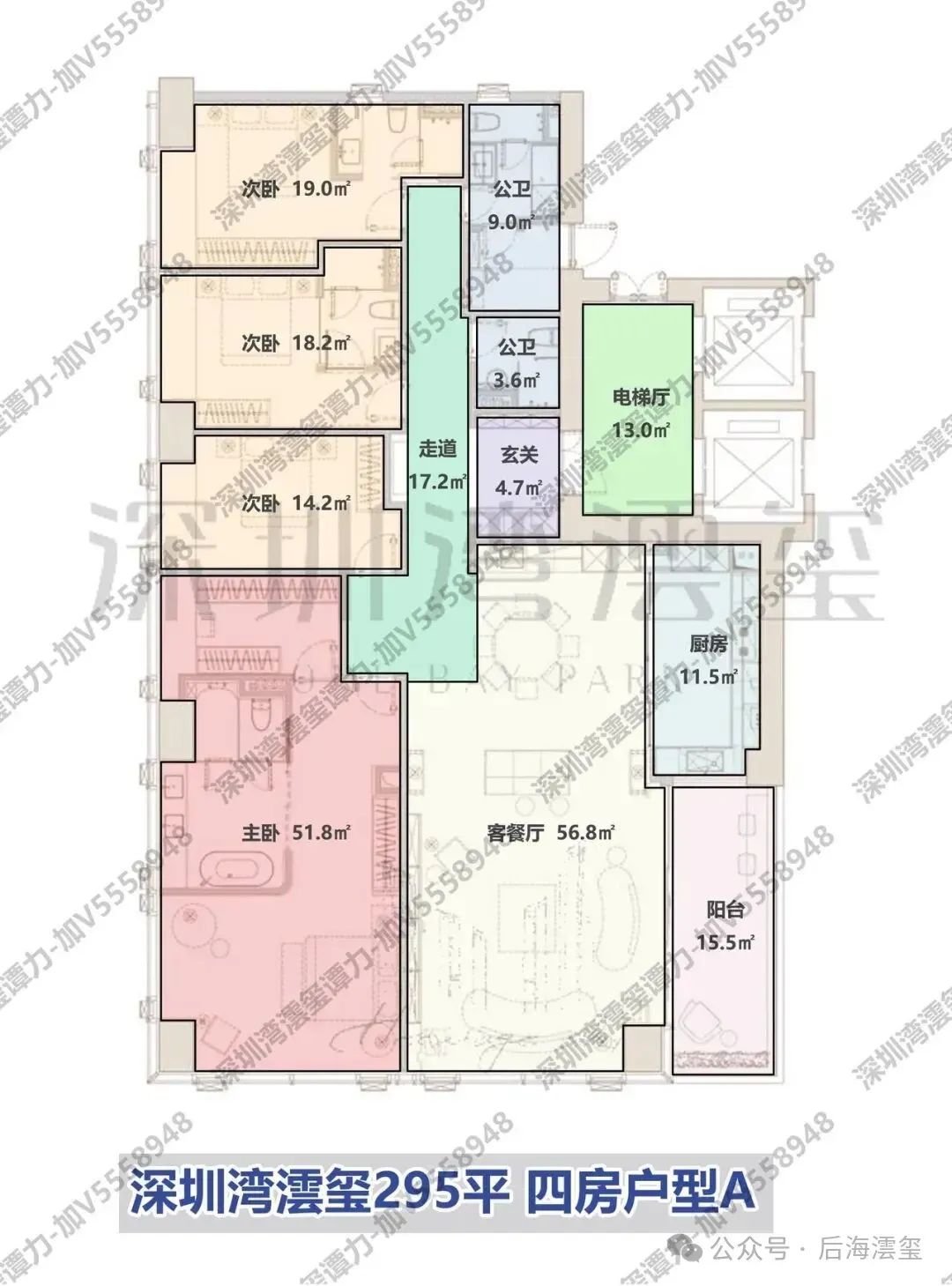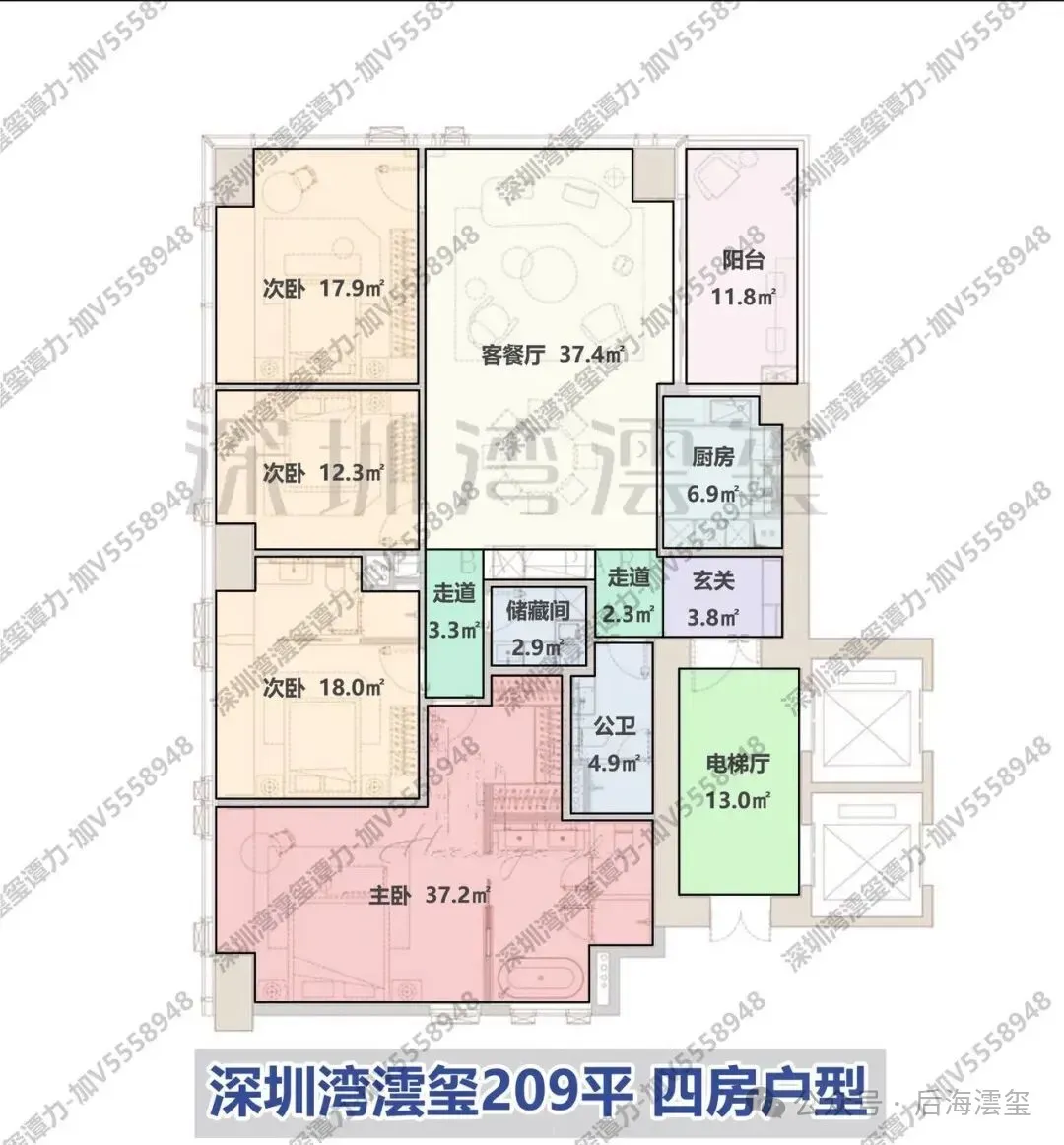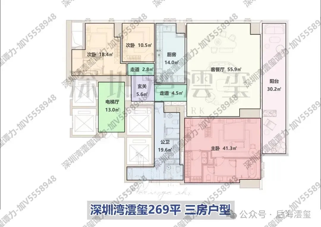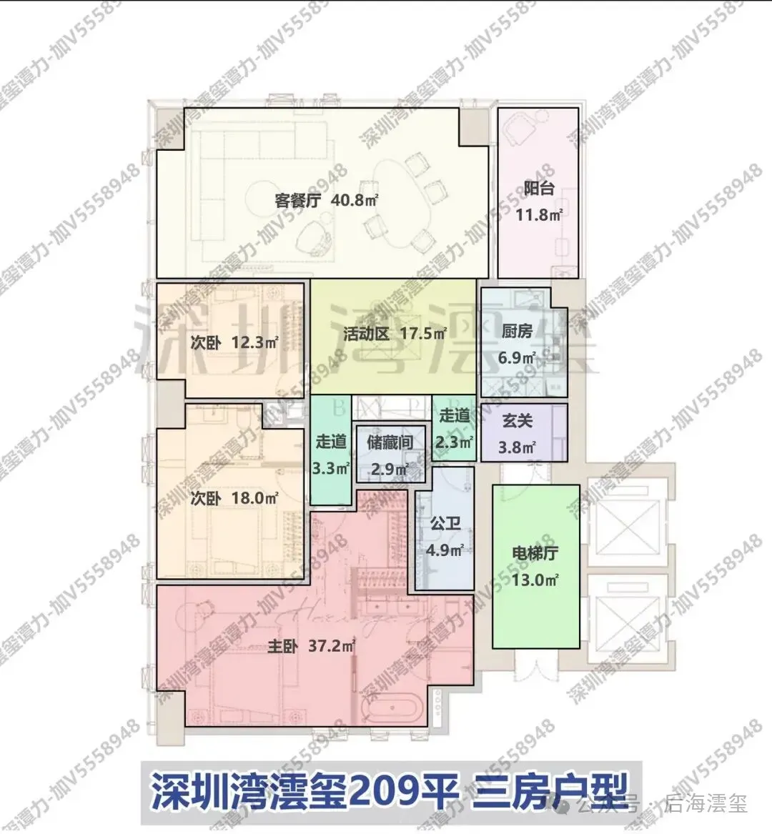 3. **超高区**:始于58层(对应建筑高度200米以上),均为建面约500-700㎡的顶级大平层。
