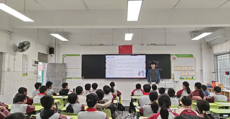 在教室里,各班班主任牵头推进安全主题班会,围绕交通安全、居家安全、燃气安全、食品安全、防诈骗、防欺凌、烟花爆竹禁放要求、心理健康等九项重点内容展开:讲解交通安全规范,同步动画演示风险;结合生活场景,指导识别居家、燃气隐患;互动科普食品安全技巧;案例解析强化防骗防欺凌意识;展示禁放区域图片,明确烟花燃放边界;分享心理健康调节方法。班主任引导学生制定“假期安全清单”,将安全知识转化为具体行动,真正实现从“知”到“行”的跨越。