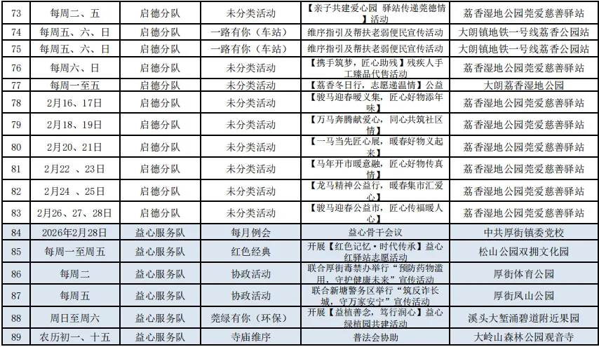目前,拓展总队下设分队与小组,协会辖属服务队,每月开展志愿服务活动 400 余场,吸引 3800 余人次参与。培育形成 “生命暖流”“城市暖流” 等系列品牌项目,常态化举办志愿者注册表彰大会、手语公益大赛等大型活动。