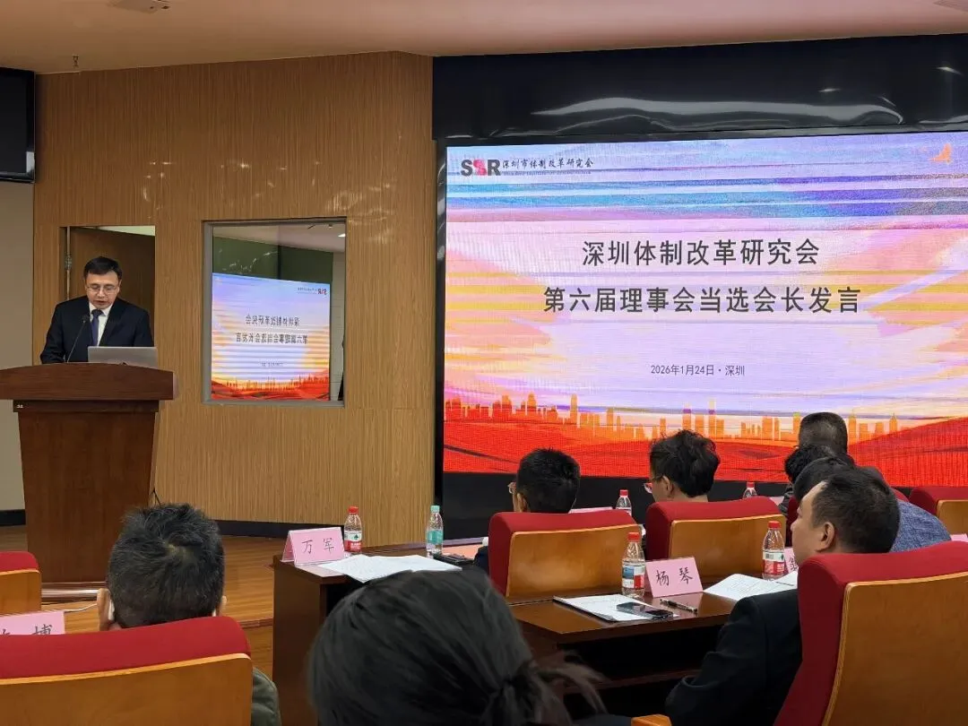 2026年1月24日,深圳体制改革研究会第六届换届选举大会暨第六届会员(代表)大会第一次会议在深圳顺利召开。大会全面总结第五届工作成果,选举产生新一届理事会及监事,发布基层改革创新优秀案例,并开展专题研讨。会长南岭、创会会长贾和亭,以及副会长、理事、顾问、专家等70余人与会。