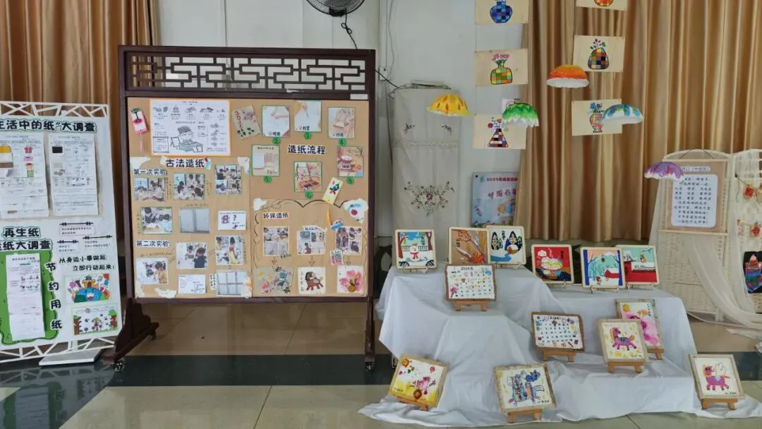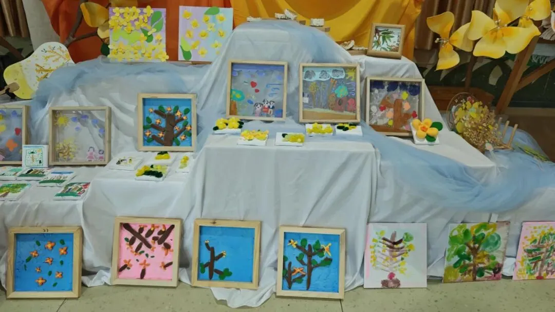 幼儿园大厅化身为一座充满童趣的“艺术展厅”,一系列主题作品展陆续登场。