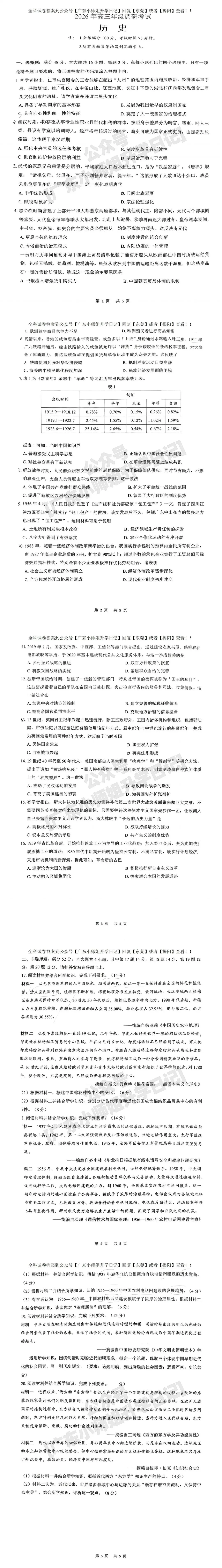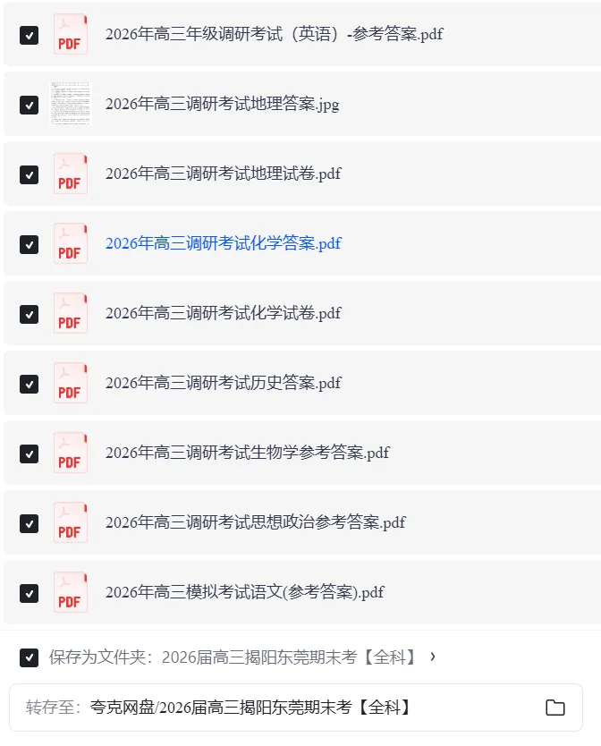 全科可打印!2026东莞揭阳高三期末考试题+答案电子版下载!