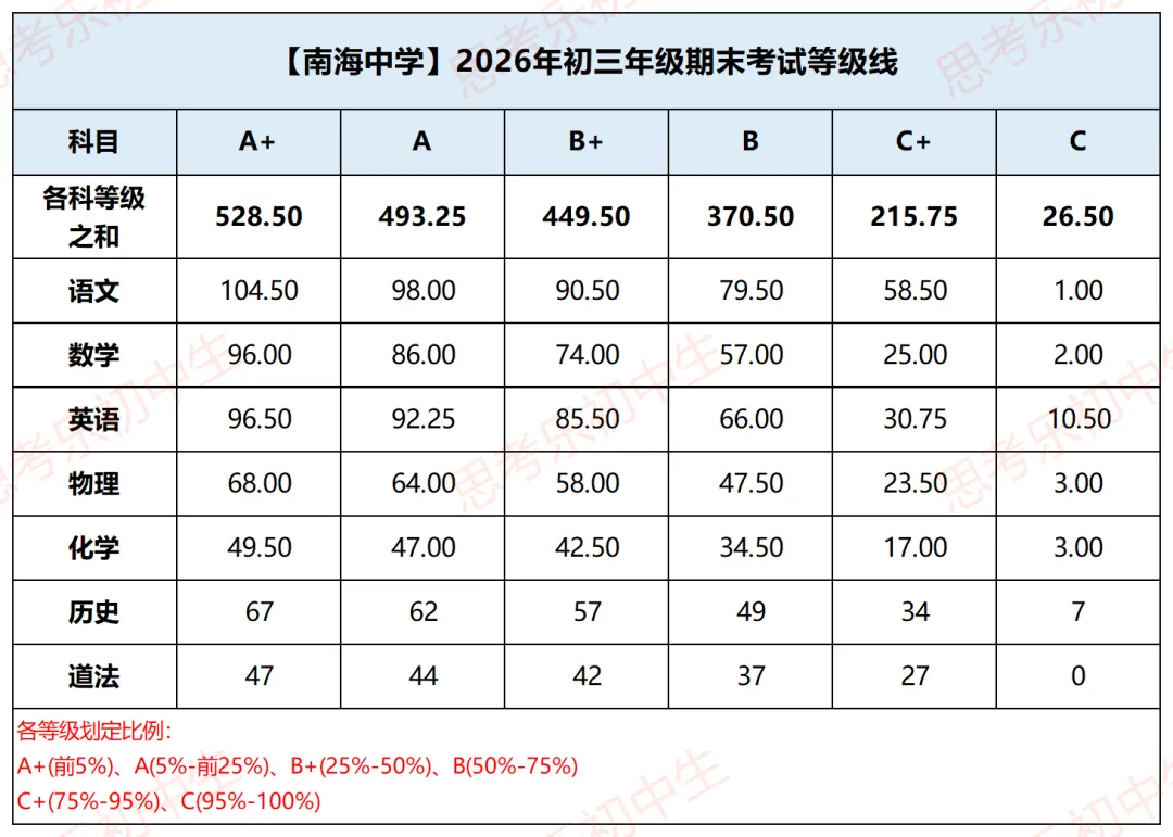 注:单科等级线之和≠总分等级线