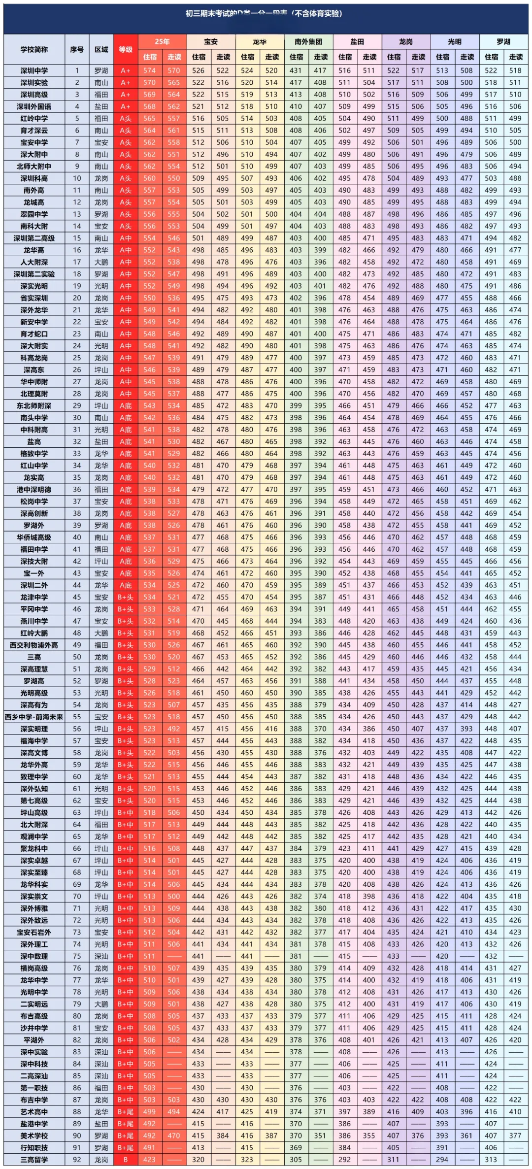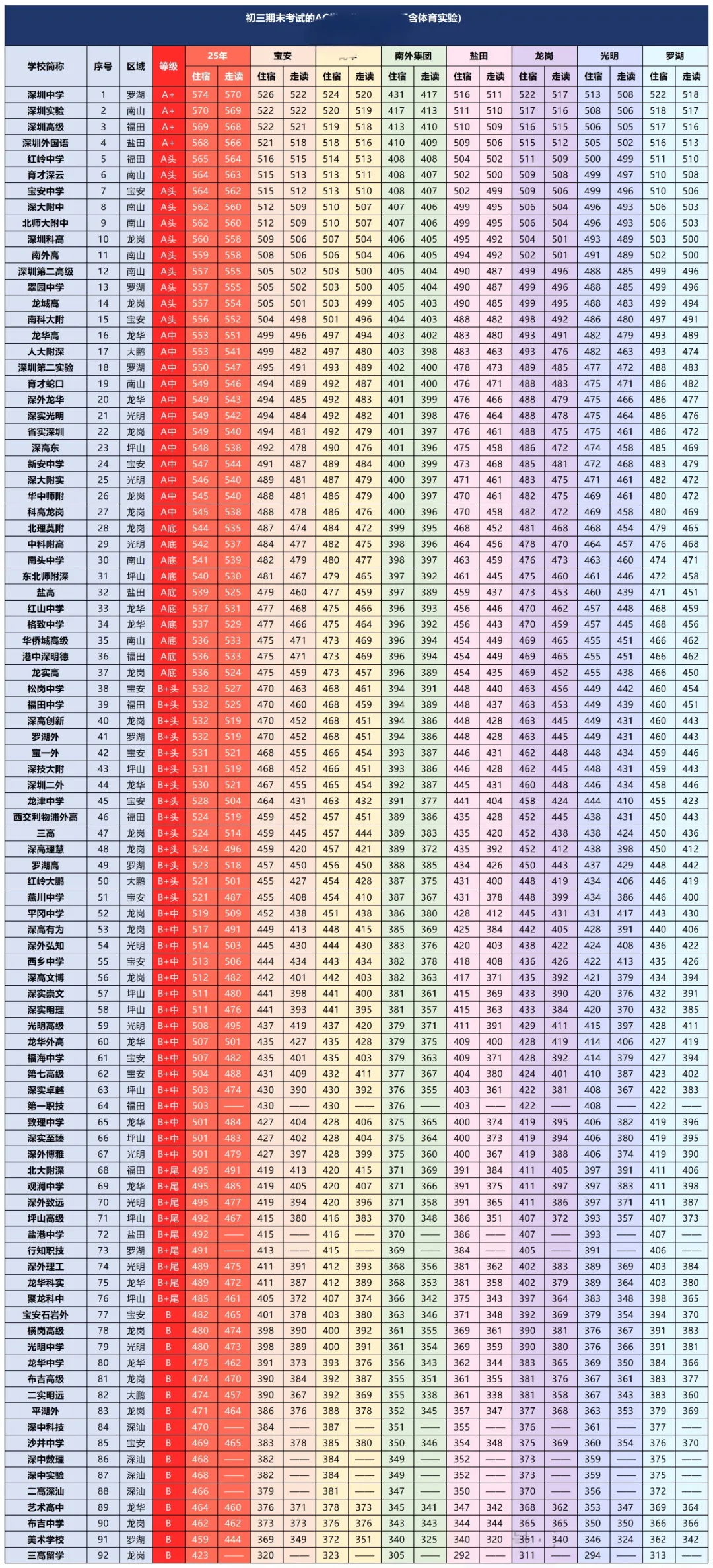 近期深圳多校/区已进行期末考试,福外集团、福田区、宝安中学、南海中学、罗湖区、红岭集团、宝安区、光明区、龙岗区、盐田区、龙华区、南外集团九上期末分数等级线已出,给大家做了汇总!
