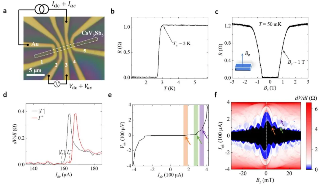图1 铯钒锑单晶表现出超导二极管效应和弗朗霍夫衍射图案