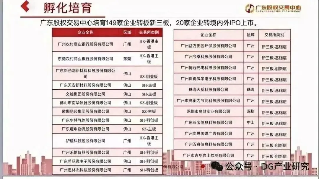 3、您的企业想上市,暂时不具备条件,但又想展示企业实力、提高企业品牌价值?或者想提升企业的信用等级、解决企业融资难问题?广东股交设有“专精特新板”“科技创新专板”“乡村振兴板”等特色板块,专门为中小企业服务;另外广东股交与全国股转系统建立了顺畅的挂牌绿色通道及转板对接机制,目前已培育149家企业成功转板至新三板,20家企业转境内外IPO上市。