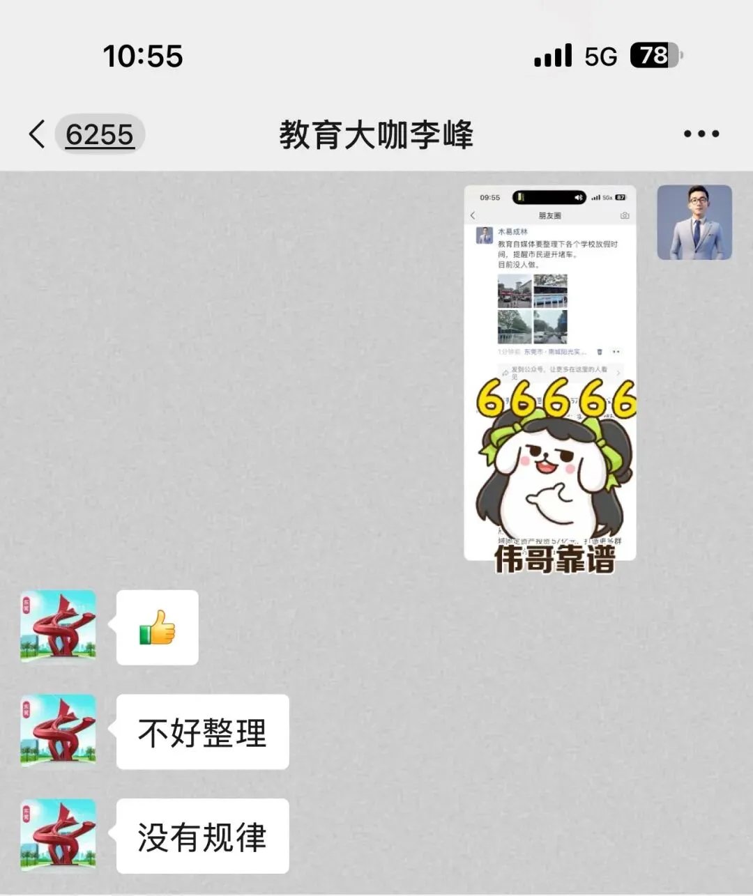 我把朋友圈建议截图给一位教育自媒体大咖。大咖回复:没有规律,不好整理。