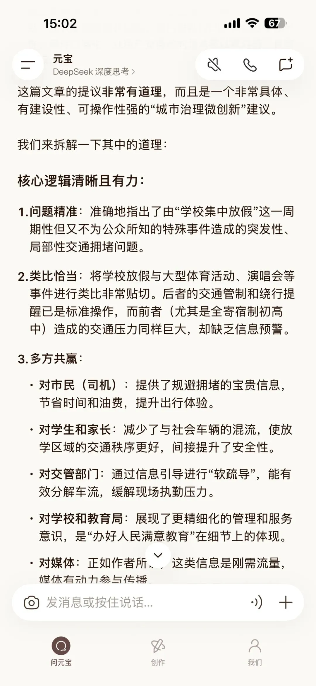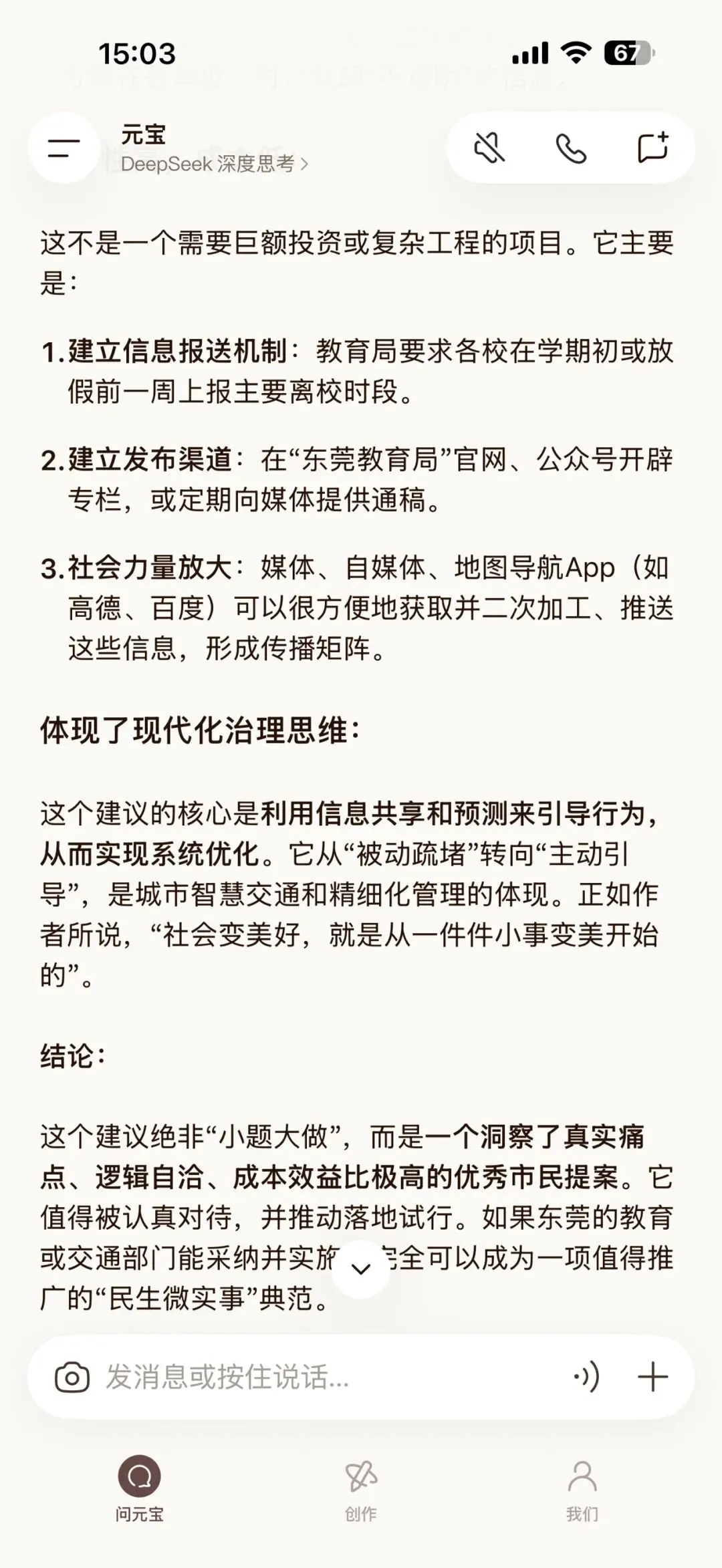 在发布这篇文章之前,我和AI元宝对话,元宝点评如下。让我对这个建议被采纳更有信心。