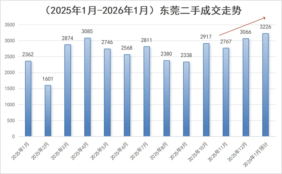去年12月,东莞二手成交3066套,已是一年来新高,但没想到,今年1月的二手成交继续上升。